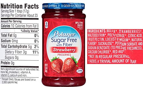 Sugar free strawberry jam nutrition facts. 95 116Ounce This jam is gluten-free and vegan-friendly. Water Strawberries Polydextrose Maltodextrin Fruit Pectin Citric Acid Locust Bean Gum Natural Flavors Potassium Sorbate Preservative Sucralose Non Nutritive Sweetener Calcium Chloride Red 40. Stir until completely dissolved bring to a full boil while continuing to stir.